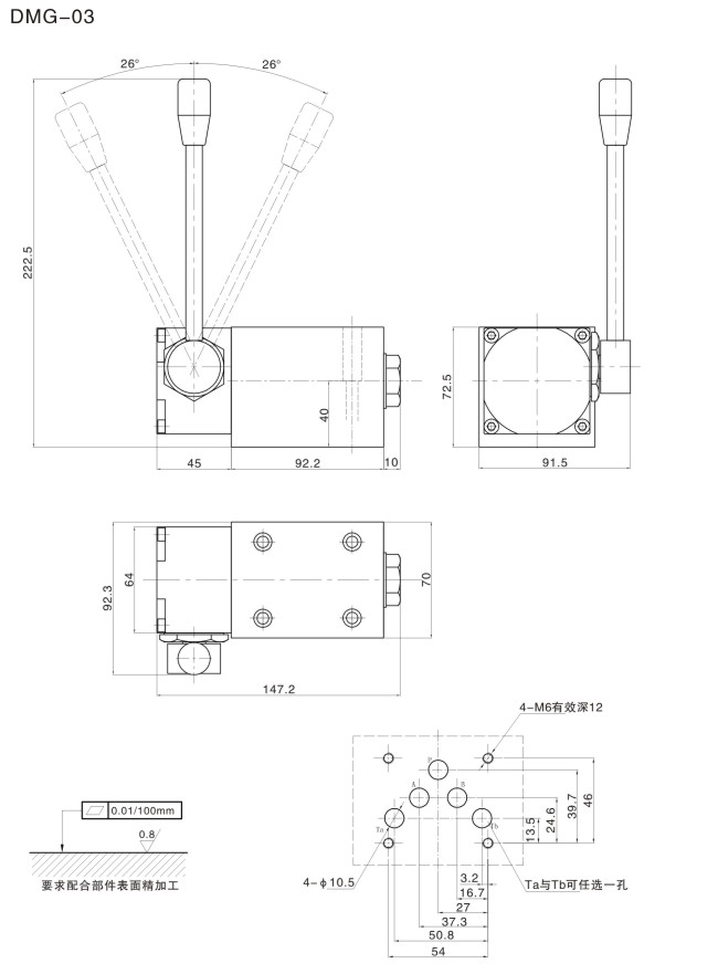 4、安裝面按DIN24340 A型 ISO4401