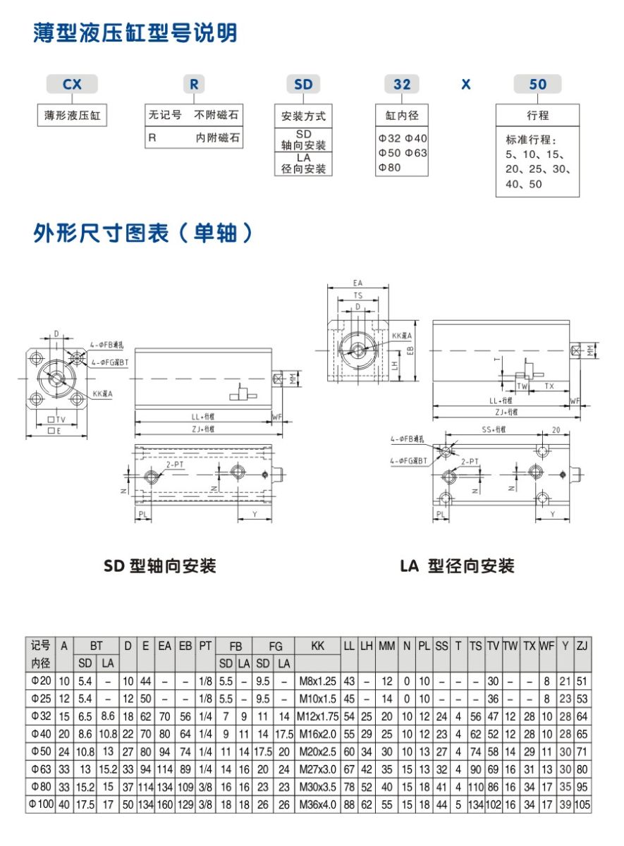 CX-SD軸向安裝模具油缸 外形安裝尺寸圖