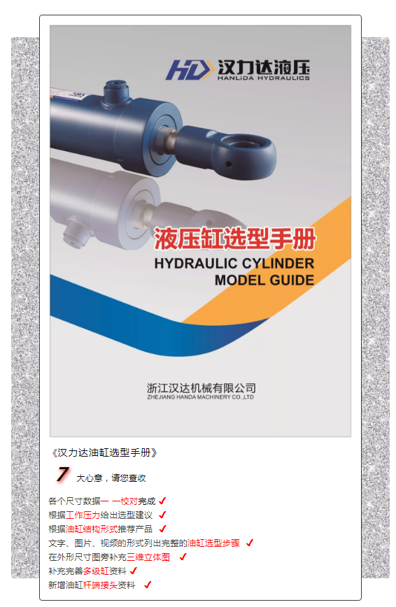 “漢力達”為漢達旗下液壓產品的品牌,漢力達液壓產品包括液壓缸、液壓閥、液壓系統,廣泛應用于自動化設備、農業(yè)機械、舉升機械、工程車輛、印刷機械、智能化倉儲系統、港口船舶等諸多行業(yè)?!皾h力達”液壓缸產品齊全,包括拉桿液壓缸、焊接液壓缸、雙作用液壓缸、單作用液壓缸,“漢力達”有標準液壓缸系列供客戶選擇,同時有優(yōu)秀的非標定制能力滿足客戶特殊需求,例如特殊油口形式、特殊材質、特殊安裝方式、特殊性能、疊加液壓閥等。