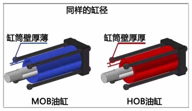 油缸的缸筒和上下蓋,用四根螺絲桿連接固定。