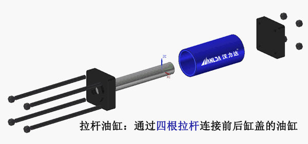 拉桿液壓缸靠螺絲桿連接前后缸蓋,小缸徑時(shí)為四根螺絲桿,大缸徑會加多螺絲桿的數(shù)量來保證油缸的耐壓性,比如6根、16根,甚至20根。